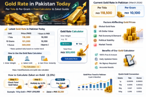 Tools Gold Rate in Pakistan Today (Per Tola & Per Gram) + Free Gold Rate Calculator Read More » March 1, 2026 No Comments